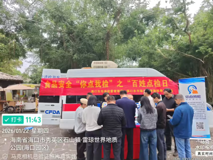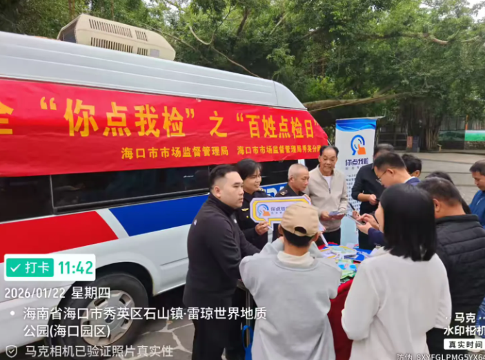 春节前夜,为进一步提拔食物抽检工做参取度,加强人平易近群众对年货食物平安的获得感和对劲度,2026年1月22日,海口市市场监视办理局正在区火山口地质公园开展年货购食物平安“你点我检”之“苍生点检日”宣传勾当。