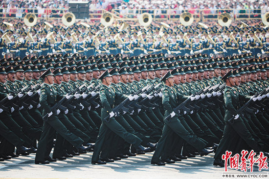 10月1日,庆贺中华人平易近国成立70周年大会正在北京隆沉举行,这是陆军方队。中国青年报·中国青年网记者赵迪/摄